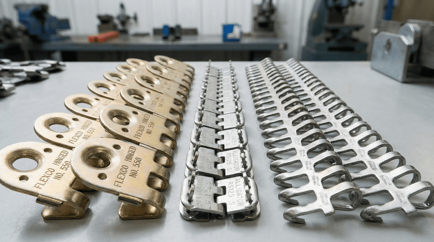 Contamos con la más amplia variedad de grapas mecánicas: Clipper, Ready Set y Unibar. Disponibles en acero inoxidable, galvanizado y versiones anti-chispa, ideales para bandas ligeras, medias y pesadas.